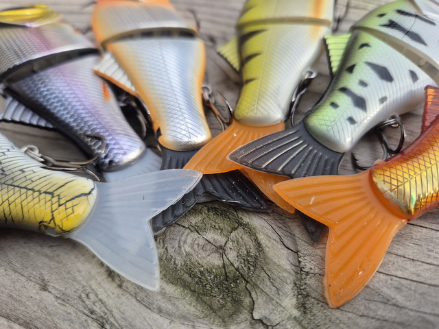 Een niet breekbaar rubber staartje en twee vlijmscherpe Kona dreggen maken de swimbait of jerkbait compleet.