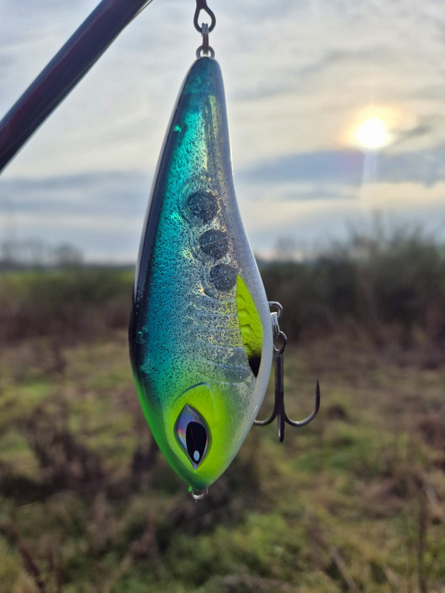 Een wat kleinere jerkbait / swimbait die suspending ,slow sinking is naar gelang de te gebruiken onderlijn materiaal en lengte onderlijn. Hier moet je even mee spelen en kijken wat voor jou het beste werkt.